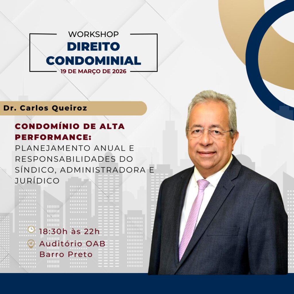 O evento tem como objetivo oferecer diretrizes práticas e estratégicas para a gestão condominial, abordando temas essenciais do dia a dia do condomínio, como, como elaboração e gestão de contratos; enfrentamento da inadimplência de forma eficaz e legal; prevenção de litígios e redução de riscos recorrentes; e tomada de decisões mais seguras, sustentáveis e alinhadas à legislação.